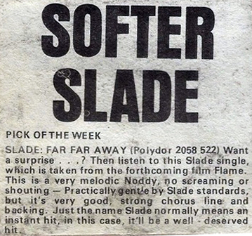 Em Outubro é lançado mais um compacto, Far Far Away, da trilha sonora do filme. Ele entrou em terceiro lugar, chegou ao segundo, mas não foi número um por causa do disco de Ken Booth. A pergunta entre os membros do Slade era “que porra é essa de Ken Booth”? A crítica disse que o Slade estava mais leve, sem os gritos de Noddy. Uma nova banda?