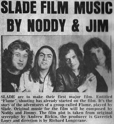 O mês de Julho foi gasto na gravação de um novo compacto e da trilha sonora deste filme, Slade in Flame, o qual foi rodado nas seis semanas seguintes, em locações como o Rainbow Theatre, a cidade de Shepperton, fábricas em Sheffield e o Hammersmith Palais. Ele retratava a ascensão de uma desconhecida banda de rock ao estrelato e todos os problemas que isso acarretou no relacionamento de seus membros, antes grandes amigos. É aí que a ficção e realidade se misturavam.