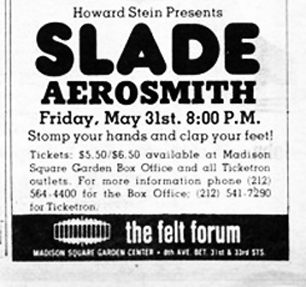 Anúncio do show de Nova Iorque, com o Aerosmith